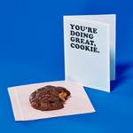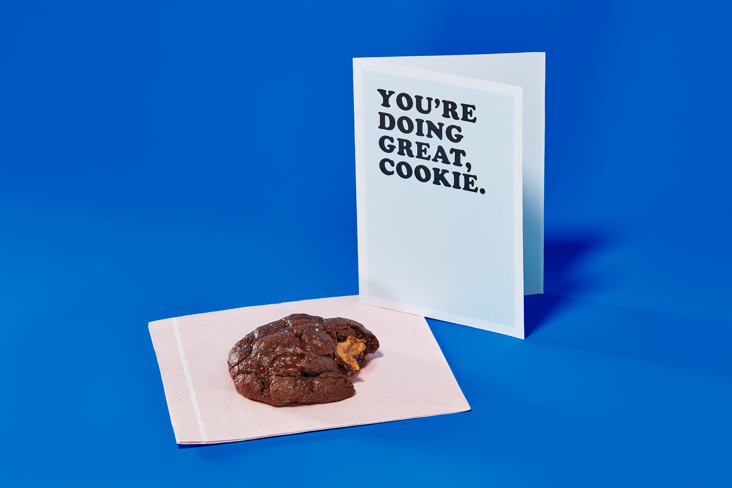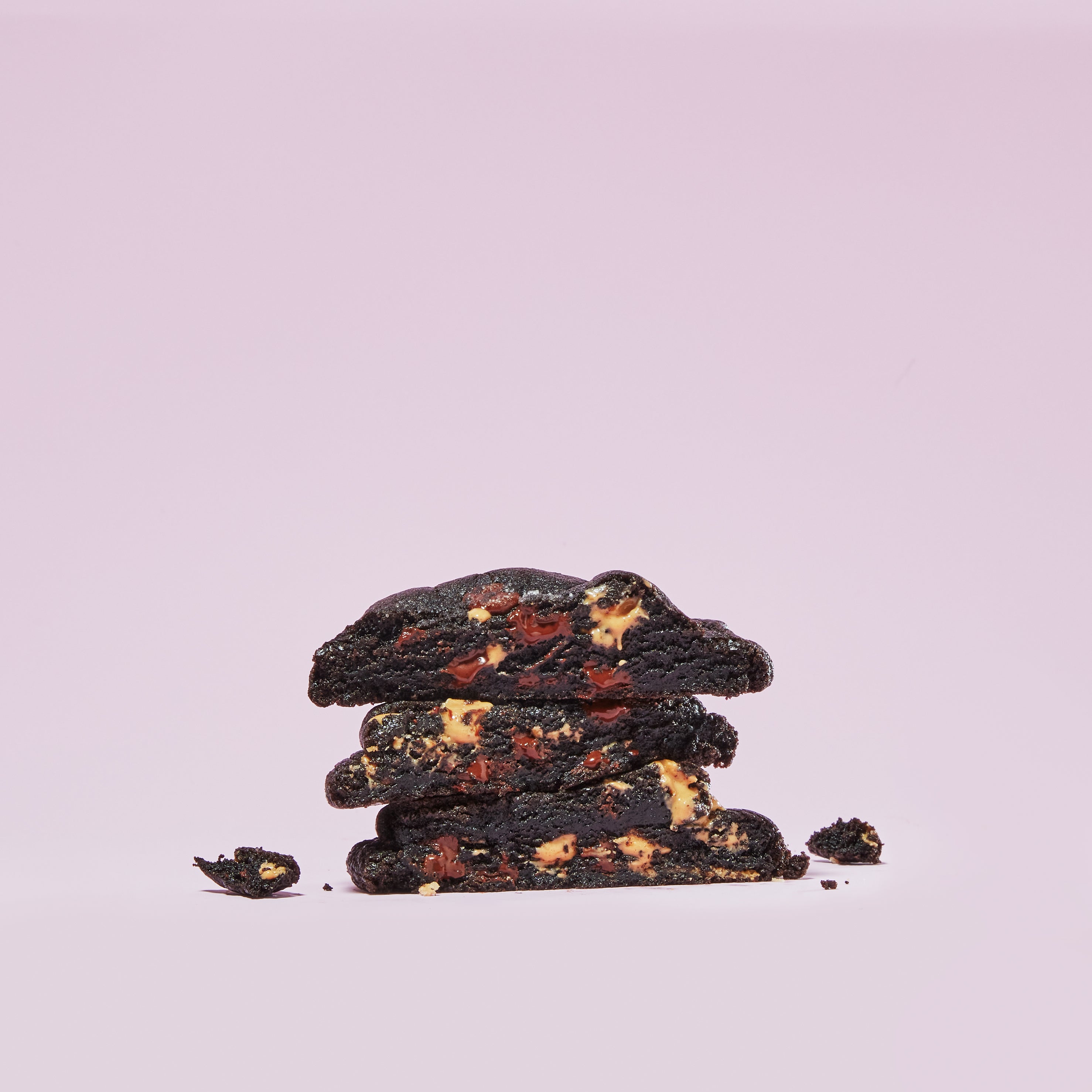 our most seductive cookie to date! the dark chocolate is sure to please the cocoa lover in all of us, and the silky peanut butter invite you in for a satisfying finish. Rated RFG-- "really freaking good"